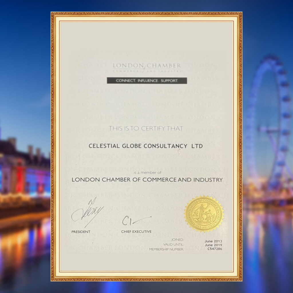 2013年6月天实国际正式加入英国伦敦商会(LCCI),企业信誉获官方认证作为活跃于伦敦与亚洲之间的桥梁型企业,Celestial Globe 是英国注册企业之一,通过商会平台不断拓展国际合作、政策交流与客户信任建设。