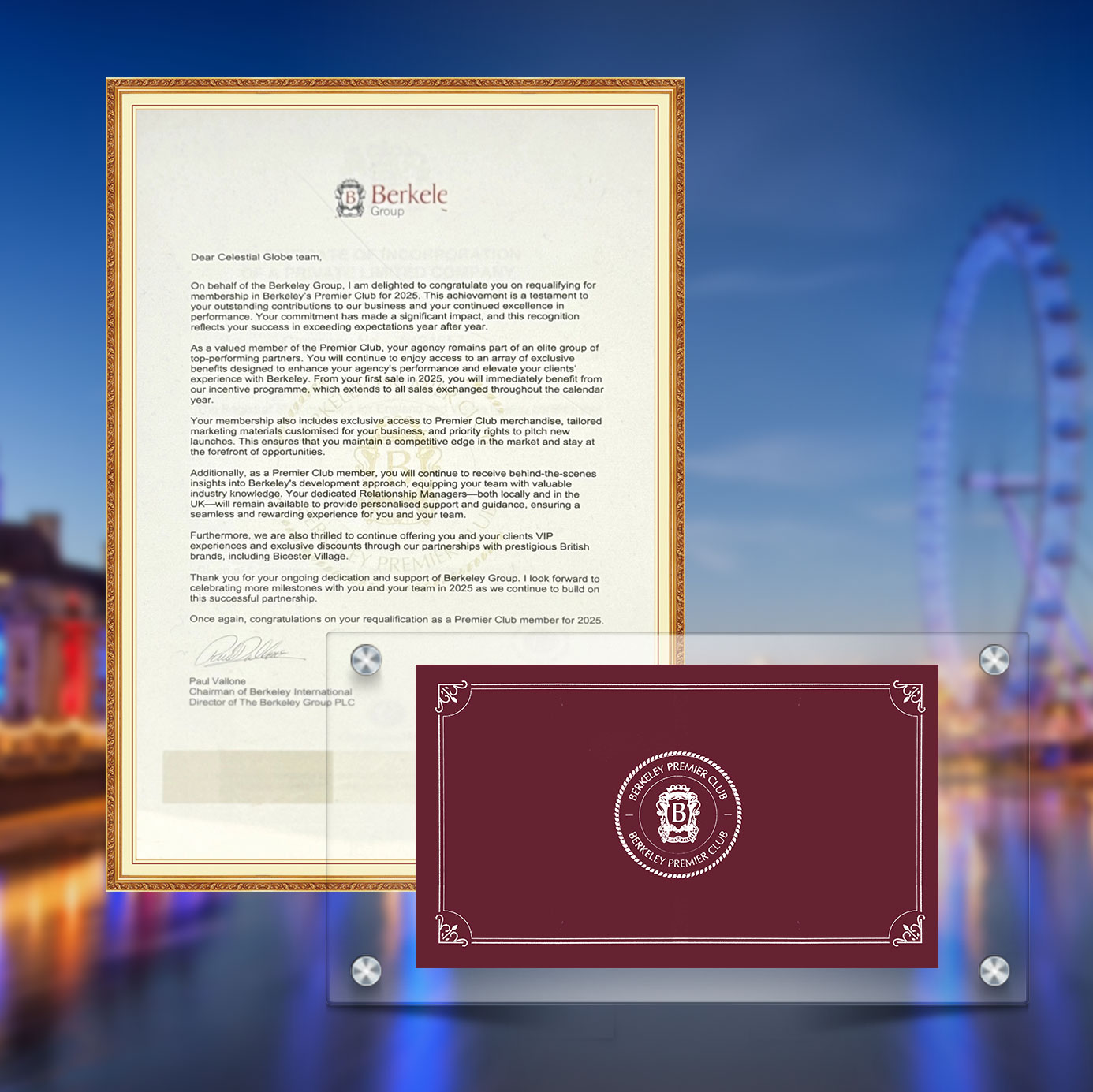 2024年,2025年连续两年入选英国伯克利集团 Premier Club 精英俱乐部