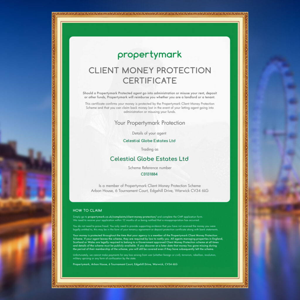 英国 Propertymark(英国房产行业协会)颁发的 客户资金保护证书(Client Money Protection Certificate)