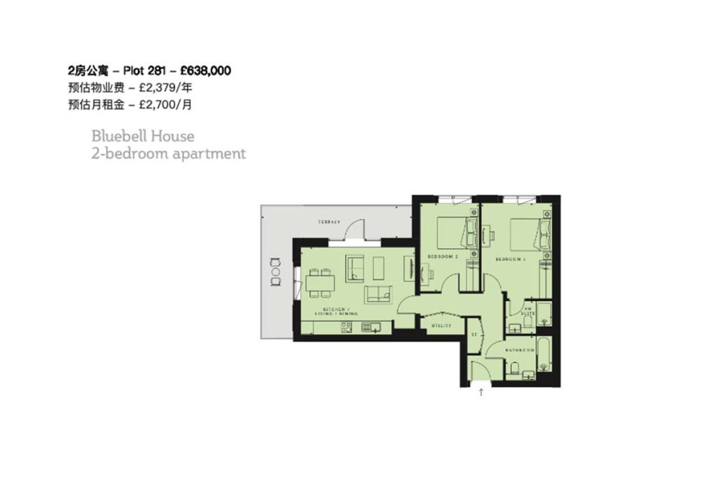 - 付款方式:预定金 £2,000 首付10% + 尾款90%(交房时)